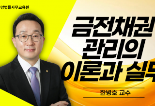 금전채권관리의 이론과 실무 강사명 한병호 수강신청기간 2026-03-26 ~ 2026-04-09 수강기간 2026-04-09 ~ 2026-05-08 교육비 62,370원 국비지원금액 28,060원 실 결제금액 34,310원 수료기준진도 80%이상, 총점 60점 이상 총점반영비율시험80% 과제- 진행단계20% 국민내일배움카드로 수강신청 시 다음 절차를 모두 완료해 주시기 바랍니다. ① 본 교육원 홈페이지에서 근로자 자부담금 결제 ② HRD-net 사이트에서 해당과정에 대한 수강신청 (이미 완료한 경우 해당안됨) ※ 자부담금 결제를 완료하였더라도 HRD-Net 수강싱청을 하지 않은 경우 과정수강이 불가합니다(미승인) [ 닫기 ] 과정개요 과정목차 교수소개 추천도서 과정개요금융기관 종사자 및 회사 내 금전채권을 관리하는 재직자들이 금전채권과 관련된 주요 법률적 용어를 숙지하고, 업무를 처리하는 과정에서 발생하는 사안들에 대해 법률실무와 쟁점, 사례를 살펴서 금전채권을 효과적으로 관리하는데 그 목표가 있다. 강좌는 주제별로 법률적 용어에 대한 이해를 우선으로 하여, 법률적 지식이 부족하더라도 전체적인 내용을 이해함에 어려움 없이 학습할 수 있도록 한다.학습목표1. 금전채권과 관련된 주요 법률적 용어를 설명할 수 있다. 2. 금전채권에 관한 다양한 법률적 분쟁에 대하여 대응방법을 설명할 수 있다. 3. 금전채권과 관련된 여러가지 소송의 소장을 작성할 수 있다.교육대상1. 기업체 총무, 법무 업무 재직자 2. 법무법인, 변호사 사무실, 법무사 사무실 등 법률사무원 재직자 3. 금융(금전채권)관련 업무 담당자평가기준 진도 시험 과제 진행단계 반영율 - 80% - 20% 강의내용 회차 강의명 1 금전채권의 개념 2 채권의 양도와 보증 3 담보와 (근)저당권 4 계약과 계약서의 작성 5 금전채권의 소멸과 시효 6 가압류, 가처분과 채권관리 7 상속재산과 채권관리 8 민사 소송절차 9 대여금 반환 청구의 소 10 구상금 반환 청구의 소 11 금전청구와 지급명령 12 압류와 압류금지채권 13 집행권원의 종류와 강제집행 14 추심·전부명령과 채권관리 15 배당과 배당이의 16 형사법적 채권관리 17 파산과 채권관리 18 개인회생과 채권관리 19 부인권과 채권관리 20 사해행위와 채권관리 차시 차시명 재생시간 1 금전채권의 개념 40 : 34 2 채권의 양도와 보증 31 : 51 3 담보와 (근)저당권 35 : 56 4 계약과 계약서의 작성 34 : 15 5 금전채권의 소멸과 시효 31 : 06 6 가압류, 가처분과 채권관리 38 : 21 7 상속재산과 채권관리 34 : 53 8 민사 소송절차 35 : 21 9 대여금 반환 청구의 소 34 : 28 10 구상금 반환 청구의 소 33 : 03 11 금전청구와 지급명령 34 : 38 12 압류와 압류금지채권 38 : 03 13 집행권원의 종류와 강제집행 36 : 18 14 추심·전부명령과 채권관리 34 : 37 15 배당과 배당이의 32 : 44 16 형사법적 채권관리 34 : 18 17 파산과 채권관리 33 : 04 18 개인회생과 채권관리 32 : 48 19 부인권과 채권관리 31 : 22 20 사해행위와 채권관리 34 : 07 한병호 교수 담당과목민사소송 실무(기초부터 전자소송까지) 민사 사건유형별 쟁점과 실무 사무직 근로자가 알아야 할 법률실무와 사례 자영업자와 그 직원이 알아야 할 법률실무와 사례 금전채권관리의 이론과 실무 기초부터 실무까지 전자소송 완전정복 학력 및 경력중앙대학교 법학전문대학원 법학박사(SJD) 고려대학교 법무대학원 졸업(법학석사) 중앙대학교 국제경영 대학원 졸업(MBA) 카이스트 최고경영자 과정(AMP) 수료 중앙법률사무교육원 대표이사 중앙법률 사무교육학원 원장 중앙법률 원격평생교육원 원장 비영리 단체 / 산타들의 모임 상임대표 소액주주를 위한 시민연대 사무총장 서울지방변호사회 사무직원양성 강사(민사소송실무) 한국표준협회 전문위원 (채권관리 교수) 지식경제부 공무원교육원 외래교수(민사소송) 법률사무관리사 자격검정위원장 금융기관 승진시험 출제위원 농협중앙회, 저축은행 강사 (민사, 집행, 회생파산) 법무부(법률 강사) 저서 및 논문민사소송실무(개정 15판) 개인회생파산 실무와 사례(개정 11판) 가사소송실무(개정 10판) 소송119(개정 14판) 강제집행실무(개정 10판) 전자소송실무(제3판) 최신 생활법률 100선 개인회생파산실무 소송누구나 할 수 있다. 신종합법률실무대전(상,중,하) 채권실무총론(상,하) 주식의 강제집행에 관한 연구 종업원직무 모티베이션에 대한 연구 제조물피해자 구제를 위한 집단소송과 징벌적손해배상의 개선에 관한 연구 등록된 도서가 없습니다. 고객지원센터 02-6933-1177